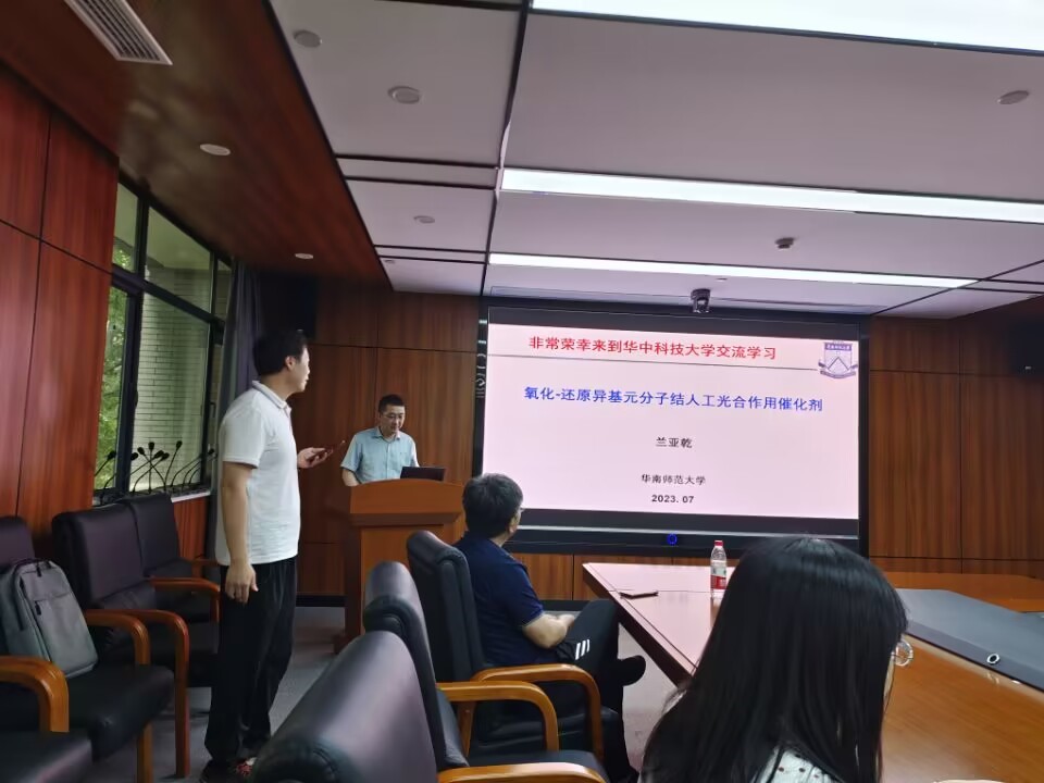 2023年07月20日下午15点,华南师范大学兰亚乾教授应TapTap新能源材料与器件中心李箐教授邀请,在公司先进制造大楼西楼C306会议室进行讲座,题为“氧化-还原异基元分子结人工光合作用催化剂”。