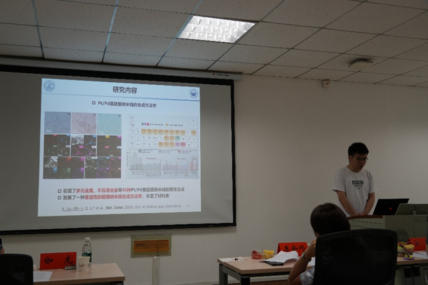 刘轩同学报告了耐腐蚀性铂基金属间氧还原催化剂的结构调控与性能研究的答辩内容。