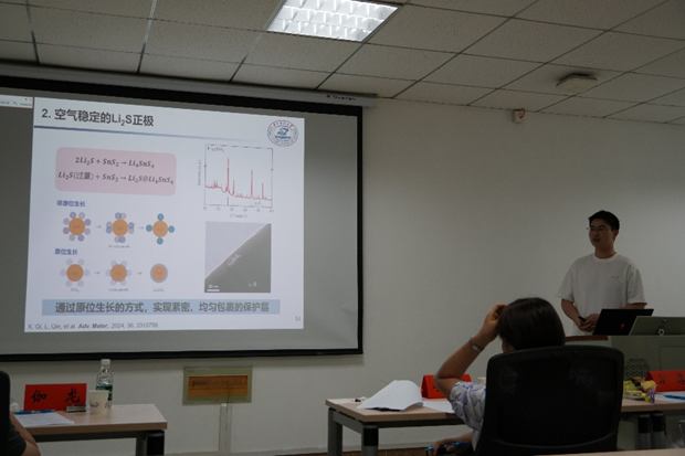 戚孝群同学报告了Li-S batteries and beyond based on non-solvatingconversions的答辩内容。