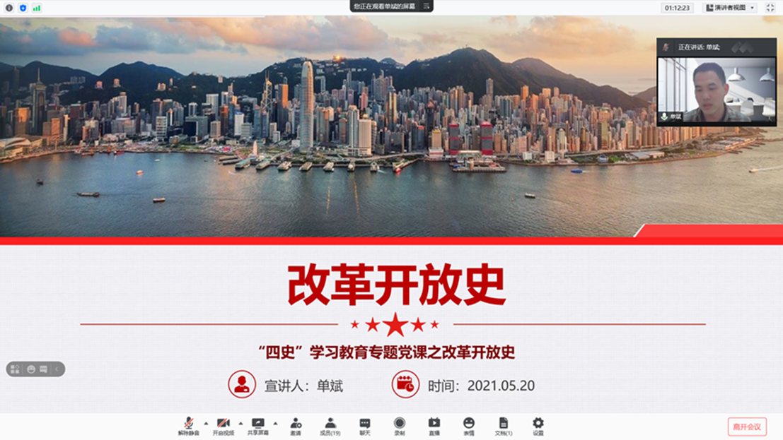 5月20日下午,新金属材料研究中心组织全体老师集体学习改革开放史。该活动首次采用腾讯会议线上方式进行。本次微党课由单斌老师主持,围绕改革开放的业绩与成就、改革开放成功的原因分析、改革开放的未来思考三个方面讲授我党领导下的改革开放史。