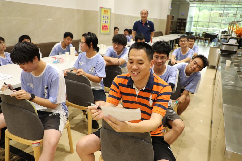 活动中还设置了丰富多彩的互动环节,师生通过游戏和竞赛相互协作,增进彼此的默契和信任。大家互相鼓励和支持,共同创造了一种积极向上的团队氛围。在杯水传递过程中,同学们相互合作,积极配合,单老师为加快传递过程不断支招,大家在欢声笑语中享受游戏。