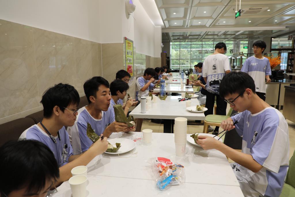 在吃粽子环节,同学们迫不及待地打开了包裹粽叶的香气扑鼻的粽子。甜甜咸咸的粽子不仅仅是一道美食,更是一份甘甜的劳动成果。每一口粽子都是同学们辛勤包制的结晶,品尝时更显珍贵和美味。大家围坐在一起,边吃边交流包粽子的心得和经验。同学们包的甜粽香甜的糯米搭配着红豆、枣子等内馅,让人垂涎欲滴。咸香的糯米与肉馅交织在一起,制作出口感丰富的咸粽。大家互相品尝着彼此制作的粽子,分享着美食的喜悦。这一刻,师生像是一家人般团结和谐。