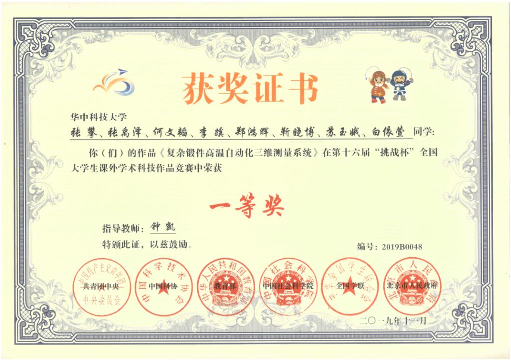 2019年第十六届“挑战杯”全国老员工课外学术科技作品竞赛全国一等奖
