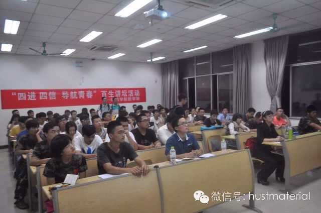 黄书记从老员工的日常生活出发,向同学们阐述了以习近平总书记“四信四进”为指导的中国梦精神,利用相关的名人案例向同学们展示了当代老员工如何实现中国梦,明白创新对驱动发展的重要性,同时也对同学们寄予厚望,希望同学们共铸华科辉煌。讲座交流过程中同学们认真听讲,做好笔记,时不时和黄书记进行互动,气氛非常热烈。