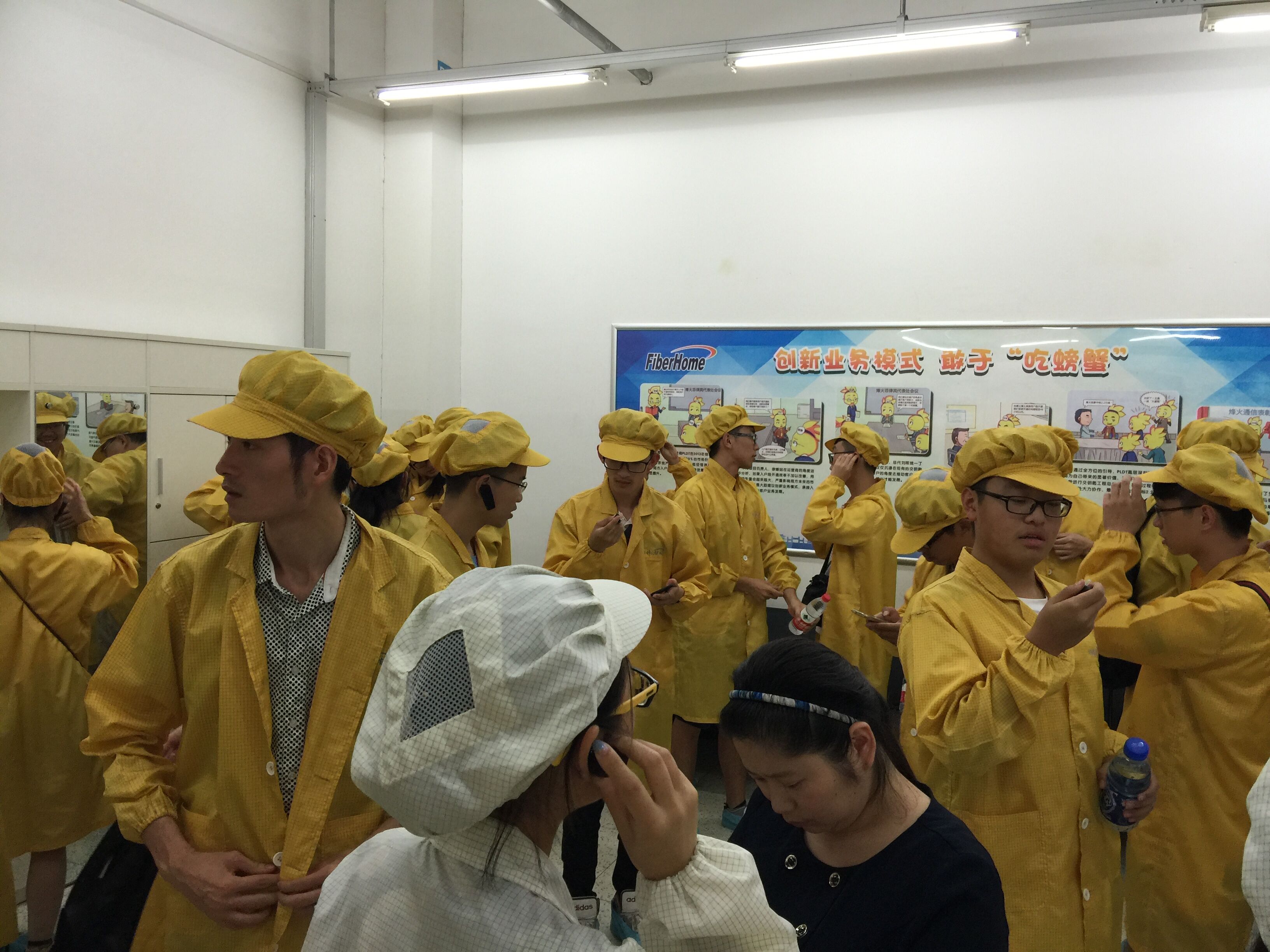 下午2点30分,同学们乘坐大巴车来到了烽火科技公司,开始了一系列的参观活动。在工作人员的引导和解说下,我们依次参观了烽火科技的电路板生产线以及相关产品的测试车间。在此期间,同学们满怀着好奇心和求知欲,认真聆听了讲解,看到了在生产线上一丝不苟工作的工人们,简单了解了一台台精密高端的仪器。经过参观,我们不仅对电子制造工艺的大致流程有了一定了解,更体会到它的精细与奇妙,也对它产生了浓厚的兴趣。这为日后我们的专业学习提供了动力。