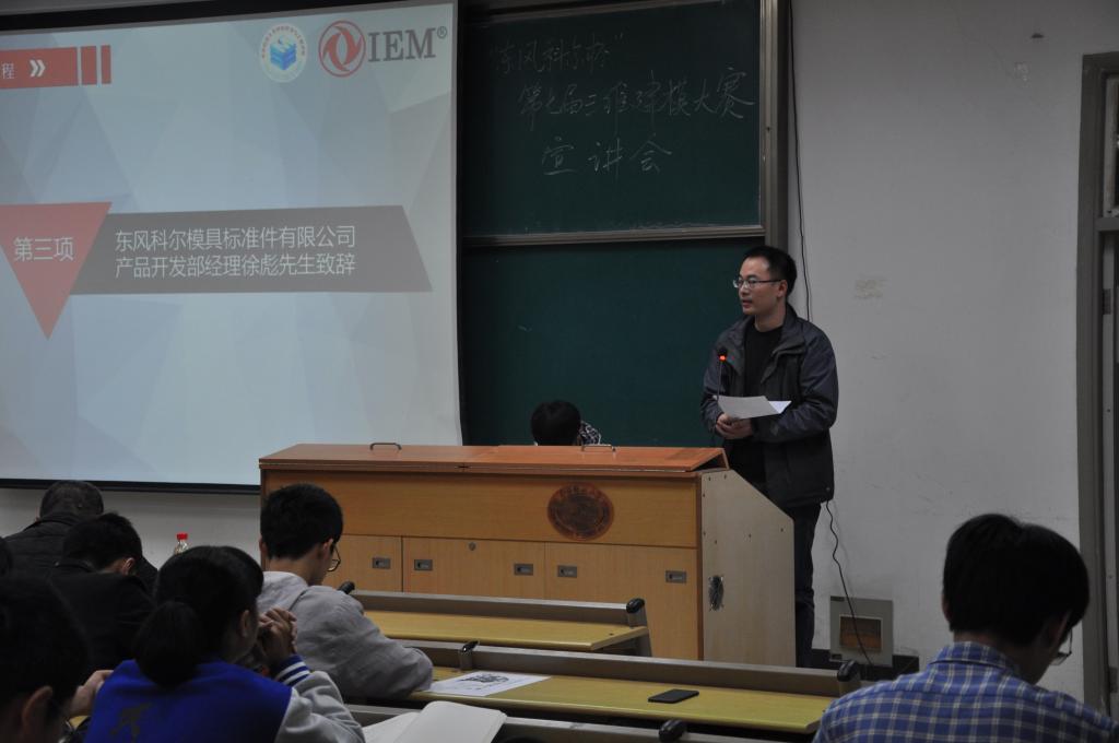 (通讯稿 熊康祺)三维建模大赛是一个已举办七年的老牌赛事,一直以来倍受武汉众高校同学的关注与支持。本届三维建模大赛由共青团TapTap官方网站委员会,TapTap官方网站员工会,TapTap官方网站大科协主办,TapTap分团委、员工会,TapTap科协承办,武汉东风科尔模具标准件有限公司赞助。2017年11月15日众高校同学齐聚TapTap官方网站东九B303教室,参加三维建模大赛宣讲会并和其他同学学习交流。