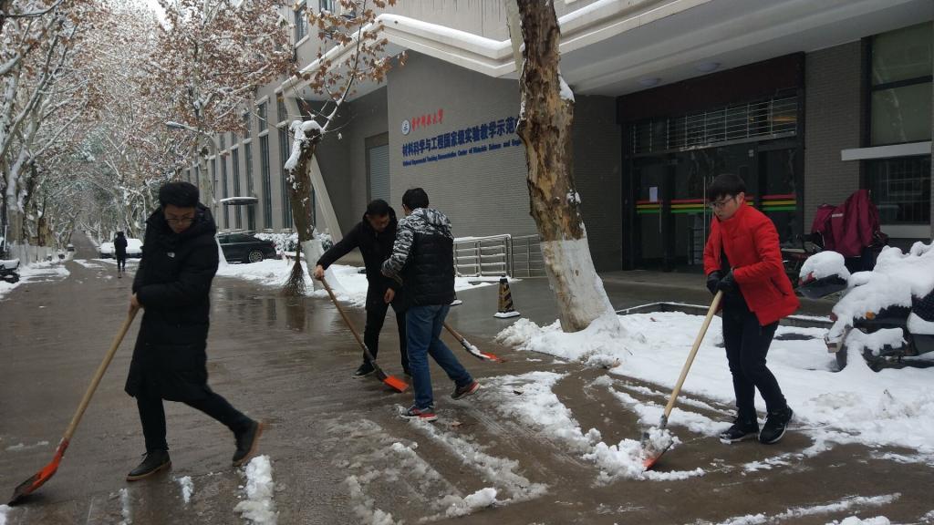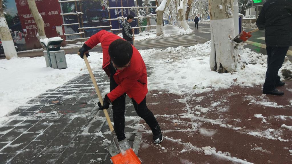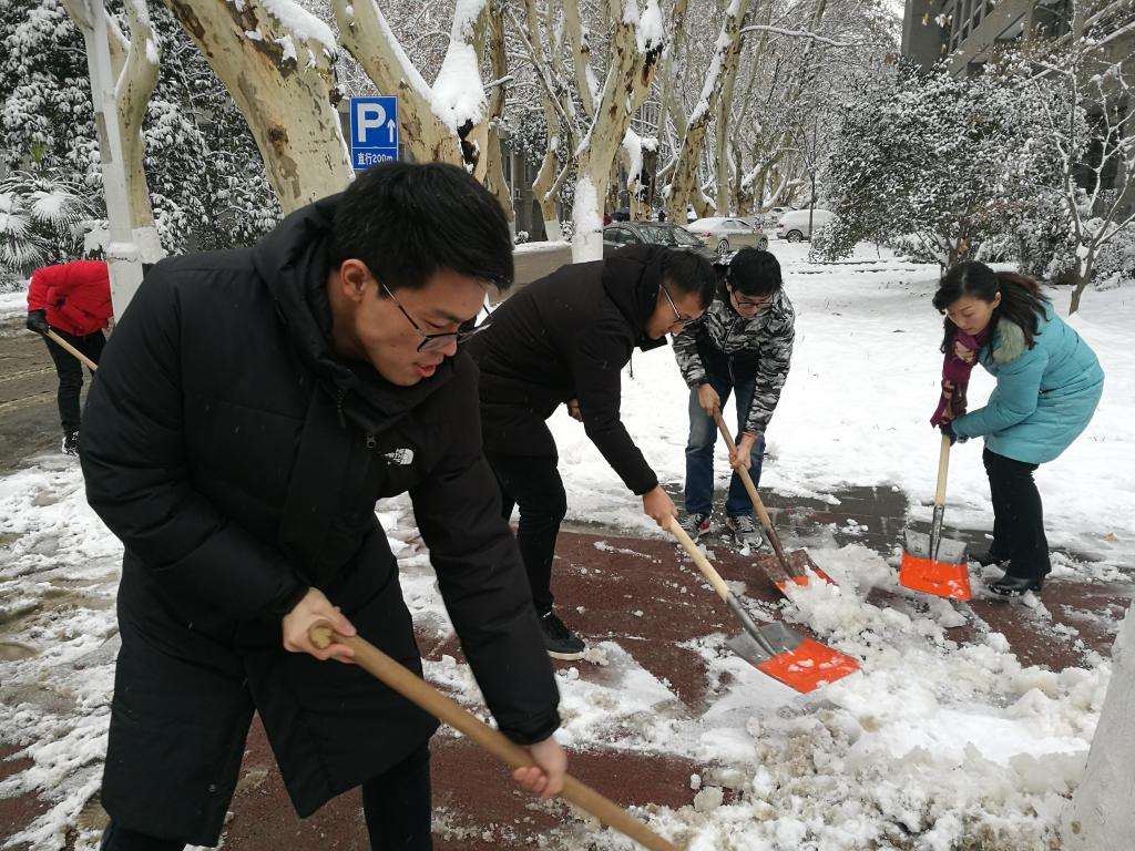 (通讯员:王曦 )2018年12月30日,赶在年末,武汉下起了大雪,整个校园银装素裹,纷飞的雪花为大家带来了美景和欢乐的同时,道路的积雪、结冰给师生的安全出行带来了极大的不便。为了方便师生的出行,保障出行安全,12月30日下午,在公司研究生工作组老师的组织下,TapTap研究生党员和研究生会干部发挥先锋模范作用和奉献服务意识,开展了义务除雪活动。