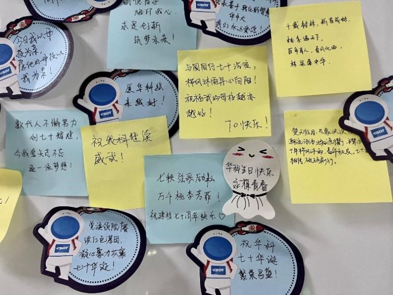 活动的最后,支部同学一起制作校庆表白墙,在便利贴上写下对公司的祝福,表达对华中大七十华诞的美好祝愿。