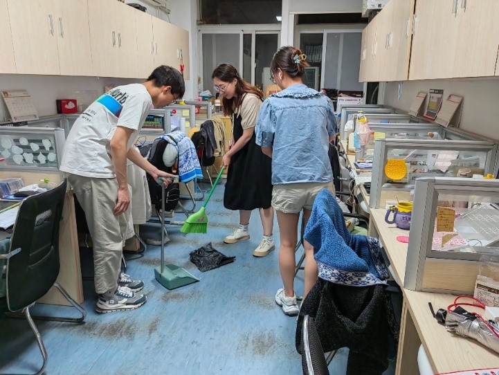 材料学第十党支部积极整理、打扫了实验室。将原本存放杂乱的实验用品归类,安放于指定的合理的柜子里,降低了实验室的安全风险。大家积极参与到实验室大扫除劳动中,提高了安全防范意识,不仅保障了大家的安全,也为了大家的实验顺利开展。