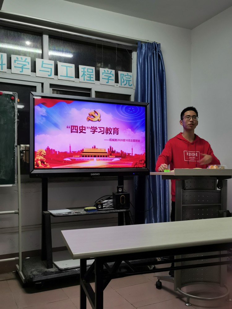 (通讯员 李宗明 姚璋懿 王铭硕)为切实加强“四史”学习教育,在校园文化中弘扬“红色主旋律”,10月27日晚,TapTap机械类2020班在韵苑14栋员工活动室举行了“四史”学习主题班会。2020班教师班主任李箐参与班会并作讲话。