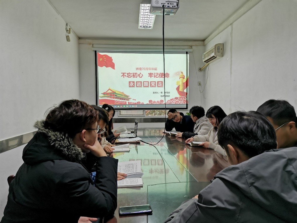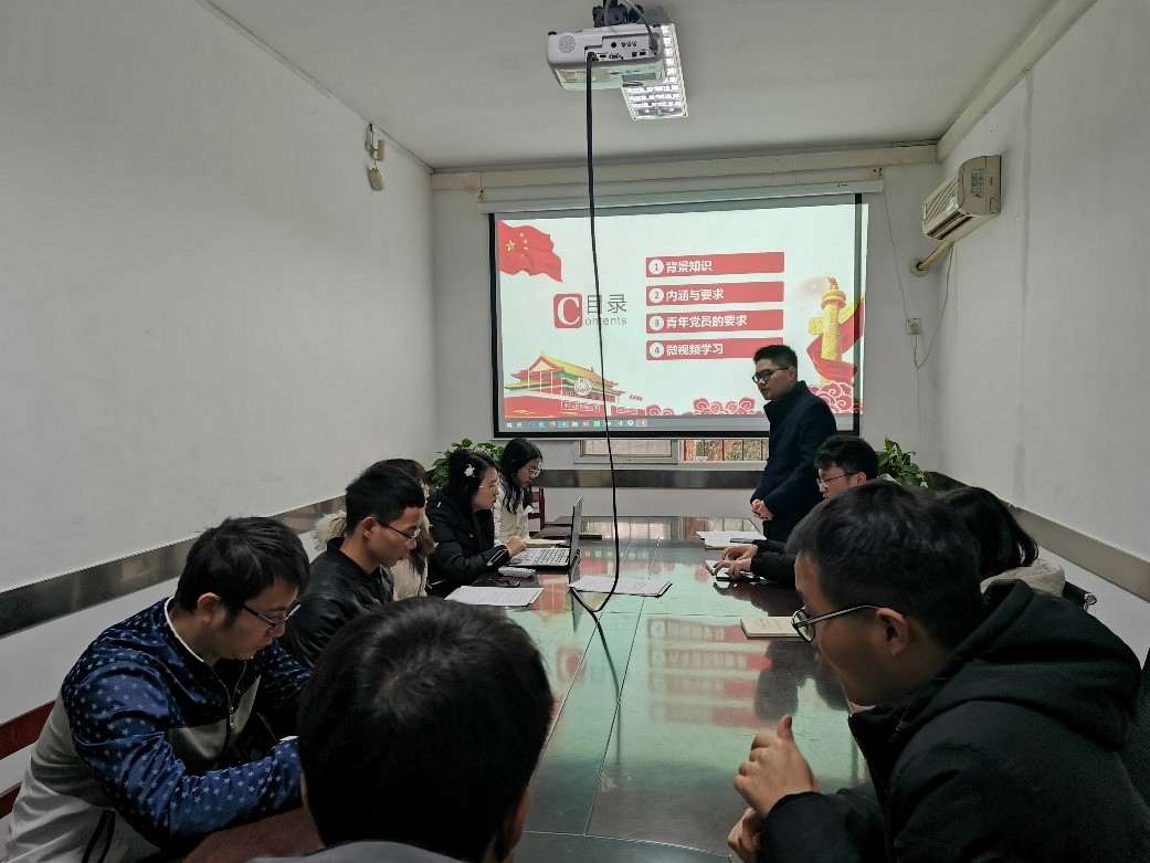 会议初始,党员马伊欣和杨宇同志为大家讲解:初心是党员干部始终为人民着想,心里始终装着人民,时刻为人民服务;使命是全党团结一致齐心协力带领广大人民群众实现中国梦的伟大目标。对于青年党员,我们可以从以下三个方面做到不忘初心、牢记使命:坚持党性锤炼,思想是行动的先导,理想信念是青年担当作为的动力源泉;加快能力提升,要加快培养复合型青年人才,提高观大势、谋全局、干实事的能力水平,不断强化创新思维、辩证思维、法治思维和底线思维;加强作风养成,发扬求真务实的精神,政治上守规、作风上干净、工作上作为,培养健康的生活方式,发扬艰苦奋斗、勤俭节约的优良传统。