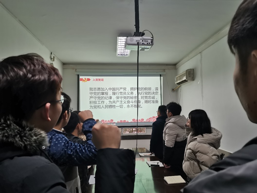 最后,全体人员重温入党誓词,由支部书记李萌同志领誓。入党誓词的十二句话,句句千钧,概括了我们党对党员的基本要求,也概括了党员对党组织和党的事业所应承担的政治责任。宣誓是一种形式,更是一种激励,一种鞭策,一种对信仰的强化。会议在震撼人心的气氛中圆满结束。