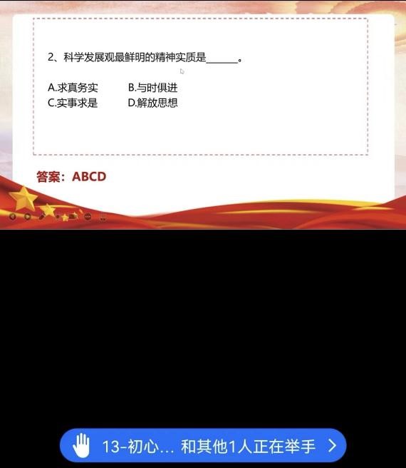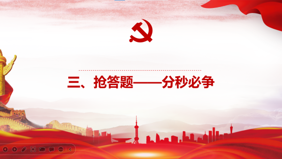 该环节共包括10道多选题和10道填空题,通过群内抢红包顺序进行抢答,答对加3分,答错扣2分,考验大家的党史知识储备、二十大精神学习成果以及对校史、时事热点的了解程度。现场群情激昂,紧张激烈,分秒必争,全力以赴,在文字缩影中回顾党的伟大历史,在不断学习中领悟党的伟大精神。