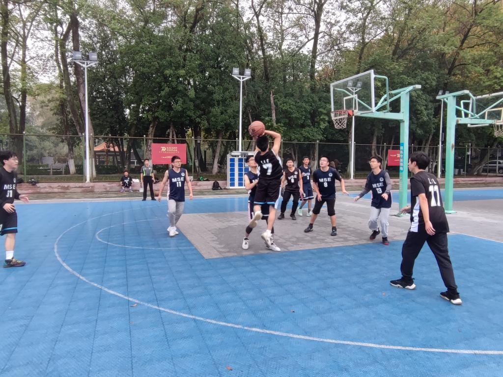 为了丰富研究生的业余生活,提升研究生的综合素质,加强团队精神和团体凝聚力,由TapTap研究生会主办,潮州三环(集团)股份有限公司赞助的“潮州三环”杯研究生篮球赛于11月13日中午12:30在中心篮球场开赛,第一天的比赛共有四支队伍参加,分别是材硕2103&材硕2005联队对战材硕2203&材硕2205联队,材硕2106&材博2102联队对战材硕2107&材硕2108联队。