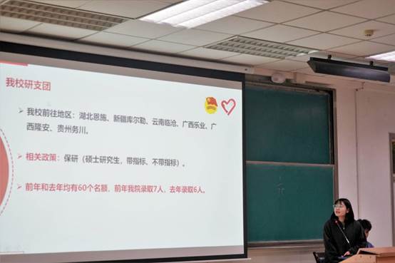 而保研并非只有一条路可走。来自研支图的李寒冰学姐介绍了另一条路,成绩固然重要,但心怀热爱一样可以成功保研。她选择加入西部计划,通过一年的支教,援助边远地区,最终成功上岸。她详细地向我们介绍了西部计划的招生要求,公司的招生详情,招生面试的流程等,鼓励同学们踊跃参加。