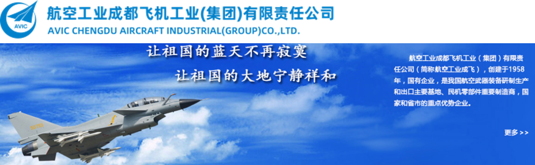 航空工业成都飞机工业(集团)有限责任公司(简称航空工业成飞),创建于1958年,是我国航空武器装备研制生产和出口主要基地、民机零部件重要制造商,国家重点优势企业。
