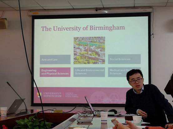 之后,Biao Cai老师介绍了伯明翰大学的办学整体情况。伯明翰大学(简称伯大),始建于1825年,是位于英国第二大城市伯明翰的世界百强名校,英国老牌名校。建校一个多世纪以来,凭着高质量、多领域的研究得到世界的认可,截止至2018年年底,从伯大已经走出了11位诺贝尔奖得主,3名英国首相,5名外国政府首脑。根据最新数据,伯大QS排名全球第79名,2019年THE世界大学排名(泰晤士报)全球第116名。除此之外,伯大还曾获得了英国权威的TEF(Teaching Excellence Framework)教学卓越框架金奖。和其它第三方机构排名不同的是,TEF教学卓越框架是唯一由英国政府主导针对英国大学教学质量的评估体系。另外,Cai老师还重点介绍了自己和团队科研情况,和与会公司青年教师进行了探讨和交流。