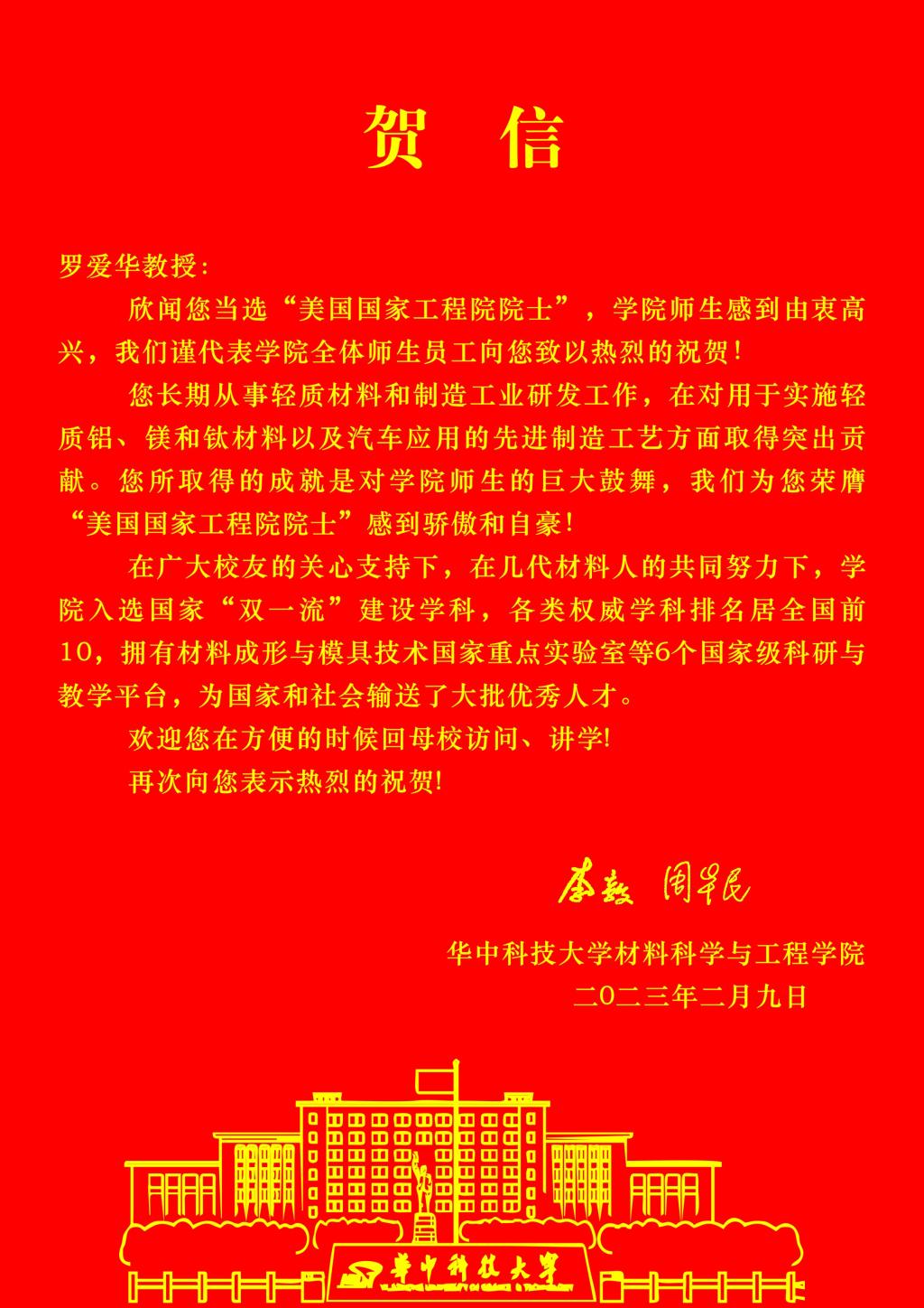 (通讯员 王箫侣)2023年2月8日,美国国家工程院公布新增院士名单,公司员工、原华中工公司(现TapTap官方网站)机械工程二系铸造教研室教师、1987级在职博士生,现美国俄亥俄州立大学(The Ohio State University)材料科学与工程系和集成系统工程系终身教授、轻质材料和制造研究所主任罗爱华,当选美国国家工程院院士。
