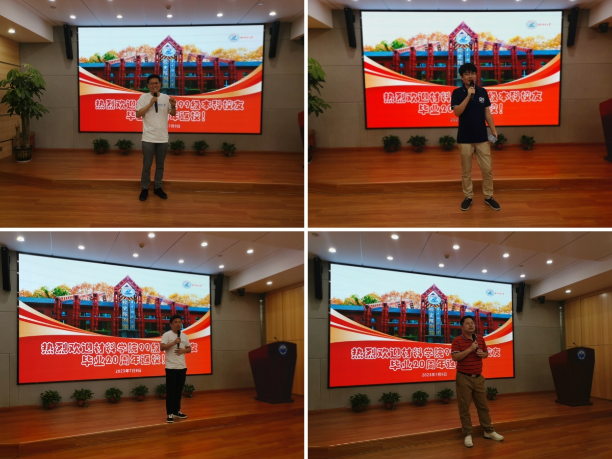 员工们一边仔细聆听,一边欣喜着公司公司日新月异的变化。材料9901班陆俊、材控9901班王治宇、材控9902班徐华阳、材控9903班范准锋、材控9904班周克林、材控9905班张伟等员工代表发言,员工们深情地回忆起二十年前恰同学少年时的校园时光,感慨公司蒸蒸日上的发展,表达了对母校母院最美好的祝福以及为公司发展而不断努力的决心。