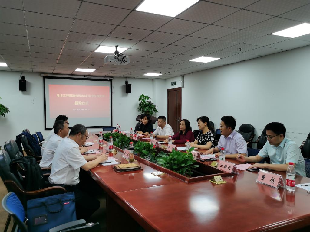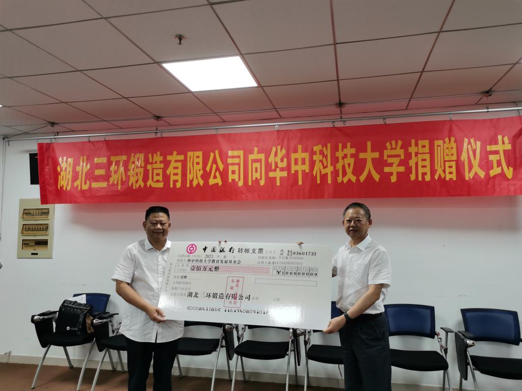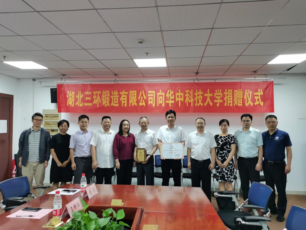 在双方代表的共同见证下,蒋德超副书记代表湖北三环锻造有限公司向公司转交捐赠支票板,黄坤华处长代表公司向湖北三环锻造有限公司授予捐赠纪念牌。