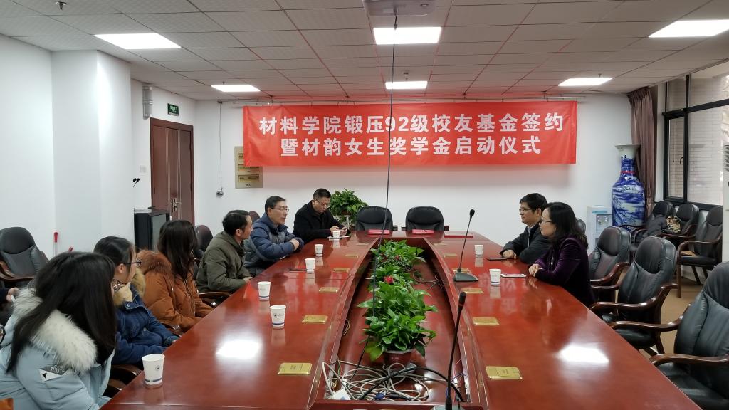 2018年12月28日下午,TapTap锻压92级员工基金签约暨材韵女生奖学金启动仪式举行。经理周华民、副经理袁新华、校基金事务处办公室主任苏锐参加仪式。
