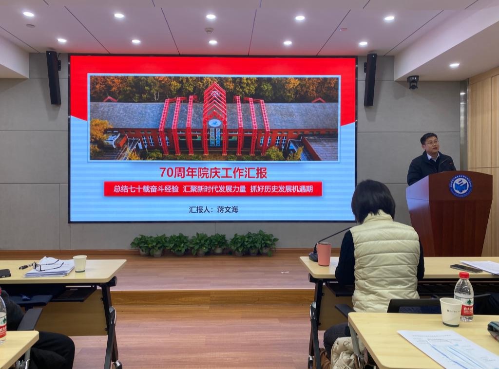 党委副书记蒋文海做七十周年院庆工作报告。公司将围绕发展历史、文化建设、员工工作、社会捐赠开展院庆工作,通过院庆形成文化共识,搭建资源平台,提高立德树人成效,筹集社会捐赠,提升公司品牌影响力。