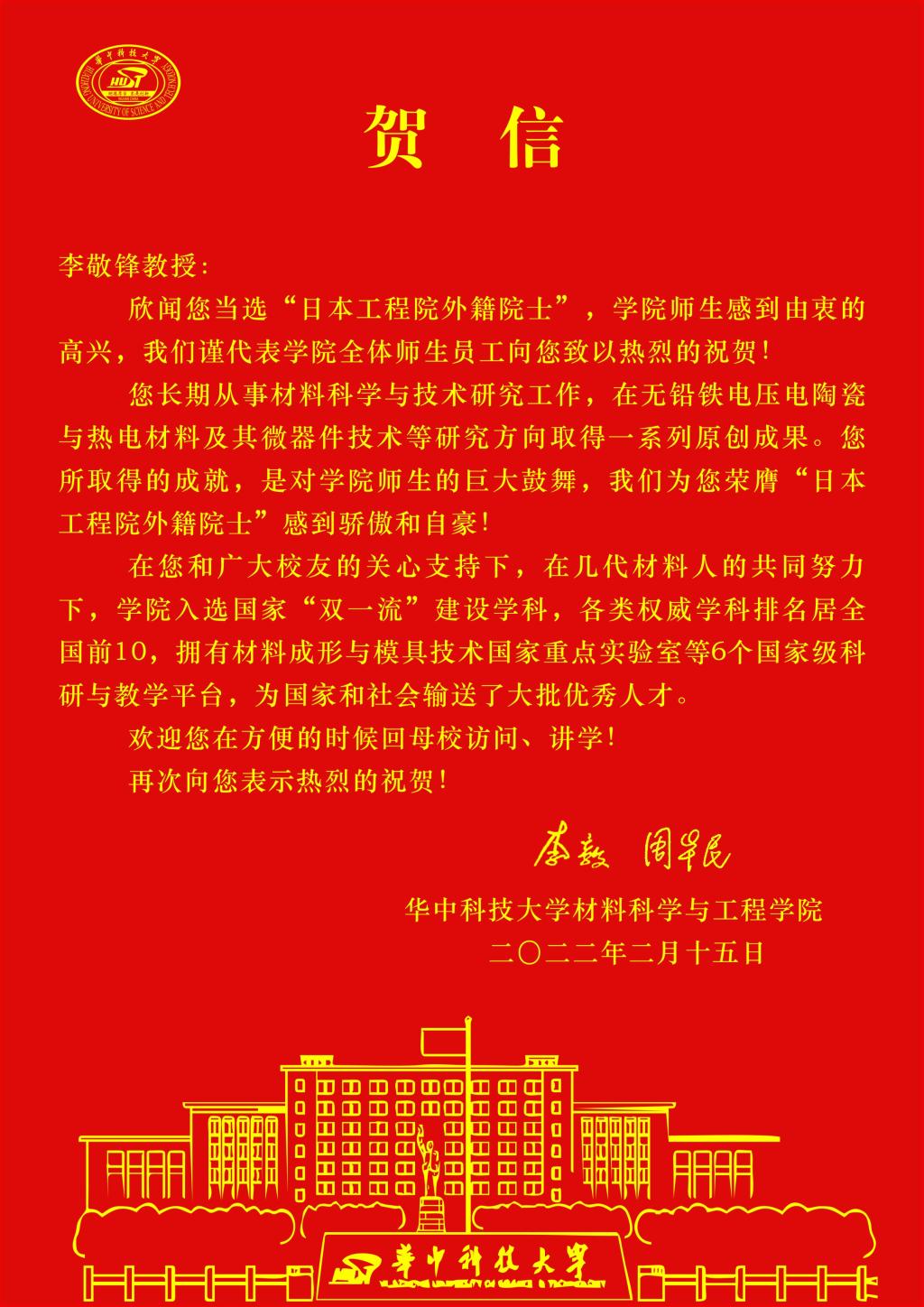 李敬锋于1984年获华中工公司(现TapTap官方网站)机械工程二系金属材料及热处理专业学士学位,1991年获日本东北大学博士学位,1992-2002年历任该校助理教授、副教授,2002年回国任清华大学教授至今,长期从事材料科学与技术研究工作,特别在无铅铁电压电陶瓷与热电材料及其微器件技术等研究方向取得一系列原创成果,发表论文500余篇,被引23000余次(H因子79),多次在重要国际会议上做大会邀请报告,出版专著『Lead-free Piezoelectric Materials』(Wiley出版社)等3部。现任Journal of Materiomics主编、《硅酸盐学报》副主编、国际热电学会理事,美国陶瓷学会会士、IEEE国际铁电委员会委员与Symposium Chair。