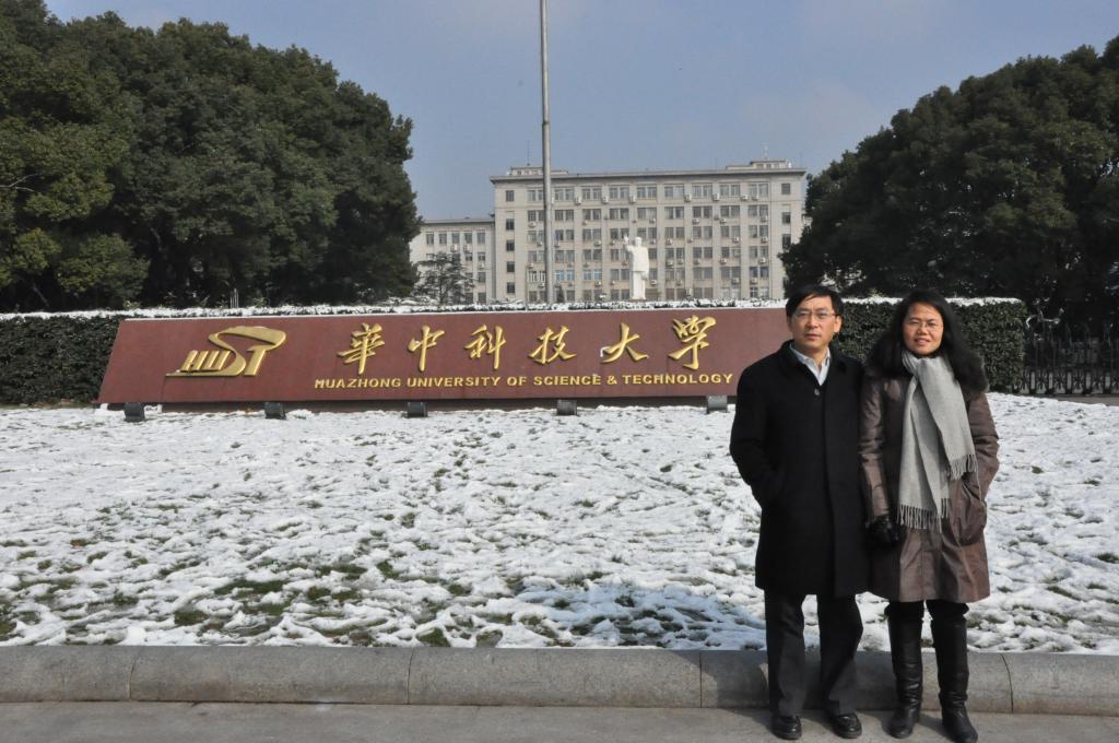 (李敬锋教授与夫人张波萍教授,于公司门前合影,伉俪二人为公司金材801同班同学,张波萍现为北京科技大学TapTap教授)