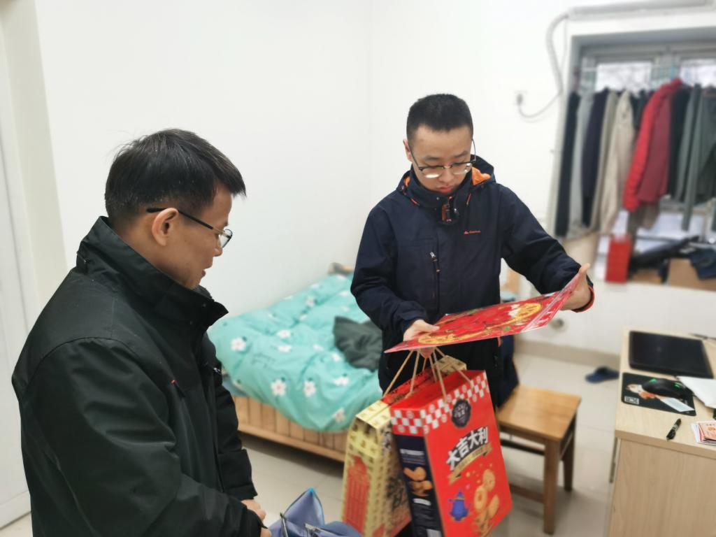在博士生公寓3栋和4栋,公司副经理杨君友看望博士生罗添元和蒋颖俊,详细了解两位同学的学习科研情况,给予了很好的建议和方法,也鼓励他们再接再厉,在新的一年里取得佳绩。