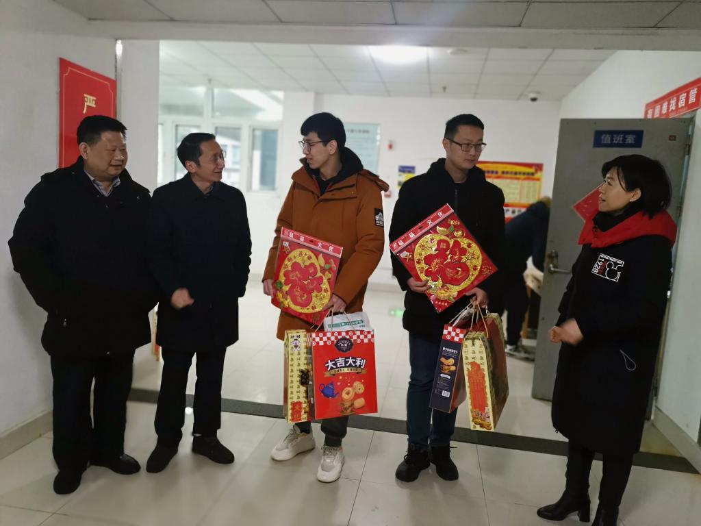 (通讯员 王曦)农历腊月二十六(1月28日)上午10时,TapTap党委书记李毅、经理周华民、副经理袁新华、杨君友、樊自田和党委副书记蒋文海等院领导来到博士生公寓及紫菘公寓看望留校过春节的员工,关心学习生活情况,送去新春福字、春节慰问品以及防疫物资,与员工一起共话新春,喜迎新年。