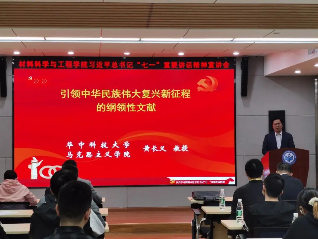 黄长义教授首先在会上回顾了中国共产党的发展历史,并指出,一百年来,中国共产党带领中国人民进行的一切奋斗、一切牺牲、一切创造,归结起来就是一个主题:实现中华民族的伟大复兴。随后具体讲授了中国共产党历史上“四个伟大成就”、“四个历史性贡献”以及“四个庄严宣告”,并明确了“只有中国共产党才能肩负起民族复兴的历史使命”。