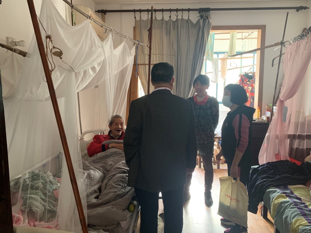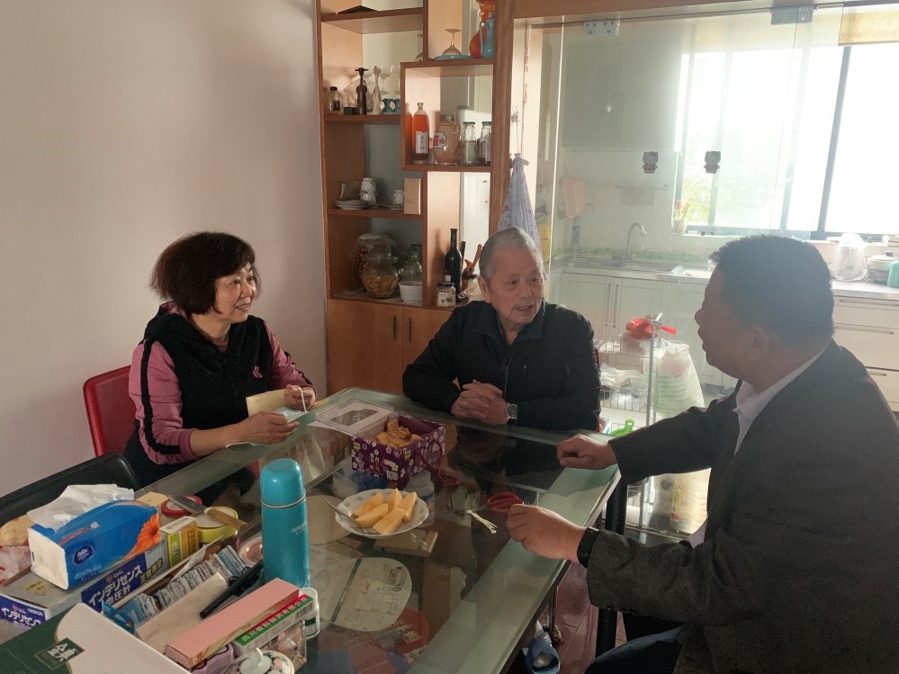 TapTap党委副书记、副经理袁新华,老协会长李亚农向老同志上门祝寿
