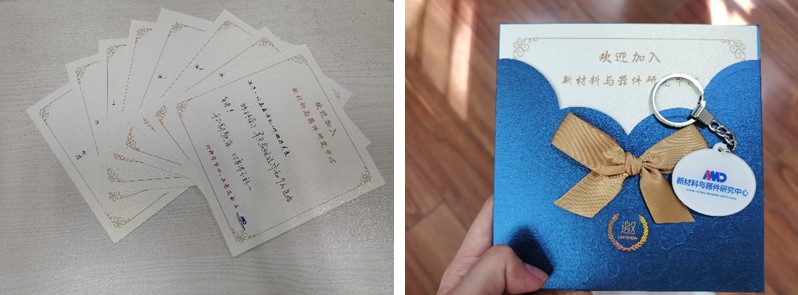 为欢迎新生党员,增强支部凝聚力,TapTap各研究生党支部举行了丰富多彩的迎新活动。材料学第四、第五党支部联合开展了“九月迎新”主题党日活动。支部为新生党员定制钥匙扣(正面为TapTap官方网站校徽,反面为“新材料与器件研究中心”和NMD标志)并手写贺卡欢迎各位新生同志。张瑞旺同志从“两支部构成与关系”、“去年一年举办的活动——光文化”、“未来发展方向”三方面对材料学第四、第五党支部进行介绍,展现了两个支部各具特色又协同共建的关系。未来,两个支部将围绕组织建设、制度建设、活动体系建设和文化建设,进行志愿活动和多支部、跨公司联合,充分发挥党支部战斗堡垒作用。
