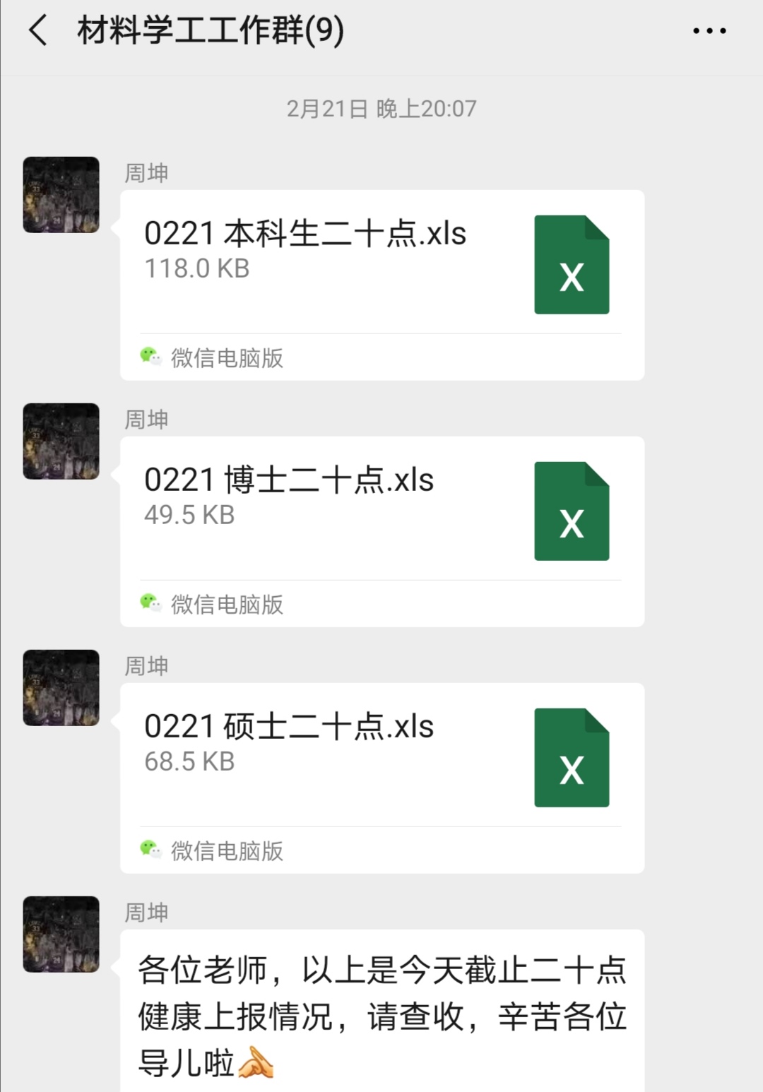 ——上午9点,公司机关党支部微信群响起了温馨提示:“各位老师,新的一天,请大家报平安及在微校园系统填报健康状况,大家开始接龙啦!”这是机关支部书记杨翔开始了每日健康情况信息上报工作。