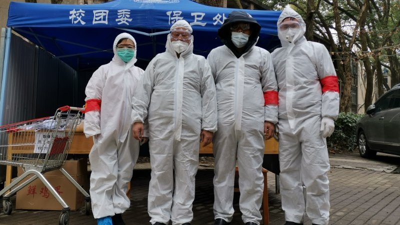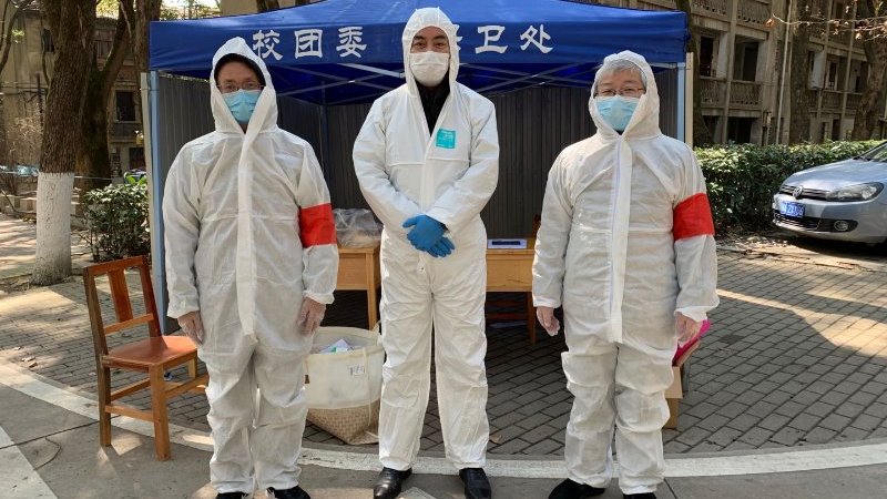 ——上午11点,党员肖建中来到退休老师家门外,将一袋药品放在门口后离开。此时,袁新华也顺利将蔬菜等生活物资送抵崔崑老师家门外。巴基斯坦专家及家人因疫情滞留武汉,在生活必需品缺乏的情况下,贾礼超老师为他们送去了米、油、菜,杨翔为他们购买体温计,协助他们做好健康监测。