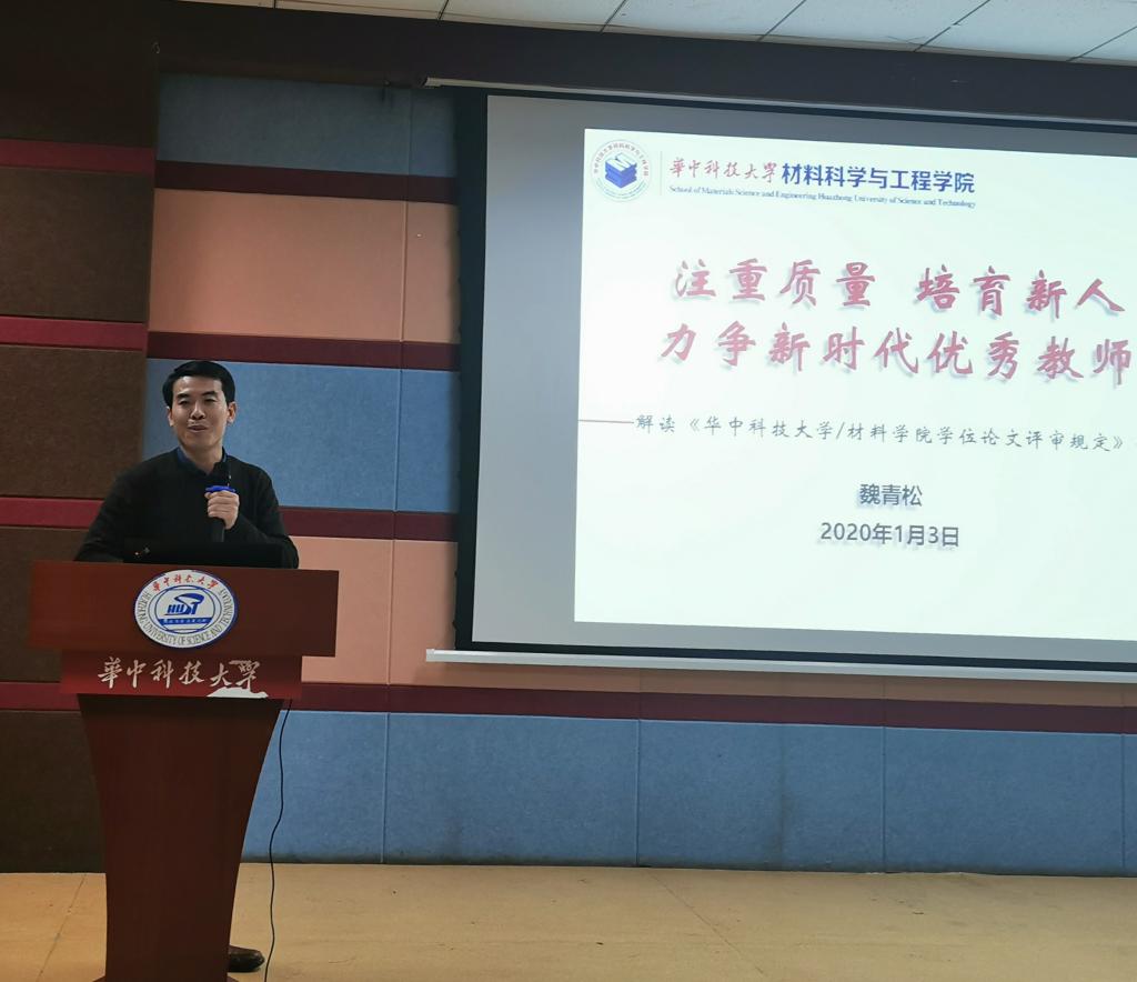 会议的后半段由院系负责研究生教育管理工作的曾大文和魏青松老师解读新制定并实施的各种制度和办法。曾大文老师就TapTap预答辩及中期筛选等相关事项进行解读,说明了这项制度的合理性和实施的迫切必要性。魏青松老师就更新的公司产品制度进行了分析和解读,着重分析了“学位论文评审规定”,并从导师的角度提供了诸多有价值的具体工作方法。