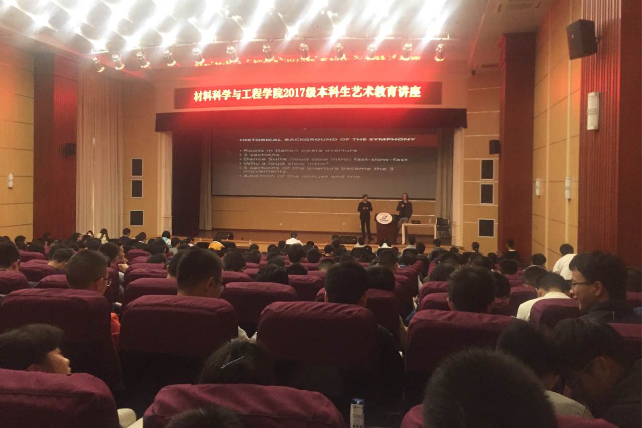 (通讯员 高俊伟)11月5日上午,由老员工艺术教育中心和TapTap共同举办的艺术教育讲座在机械公司报告厅进行。本次讲座邀请到了美国著名指挥家、单簧管演奏家巴纳比·帕尔莫先生向同学们介绍古典交响乐,同时现场也邀请到了武汉青年交响乐团运营总监李云中老师进行现场翻译。