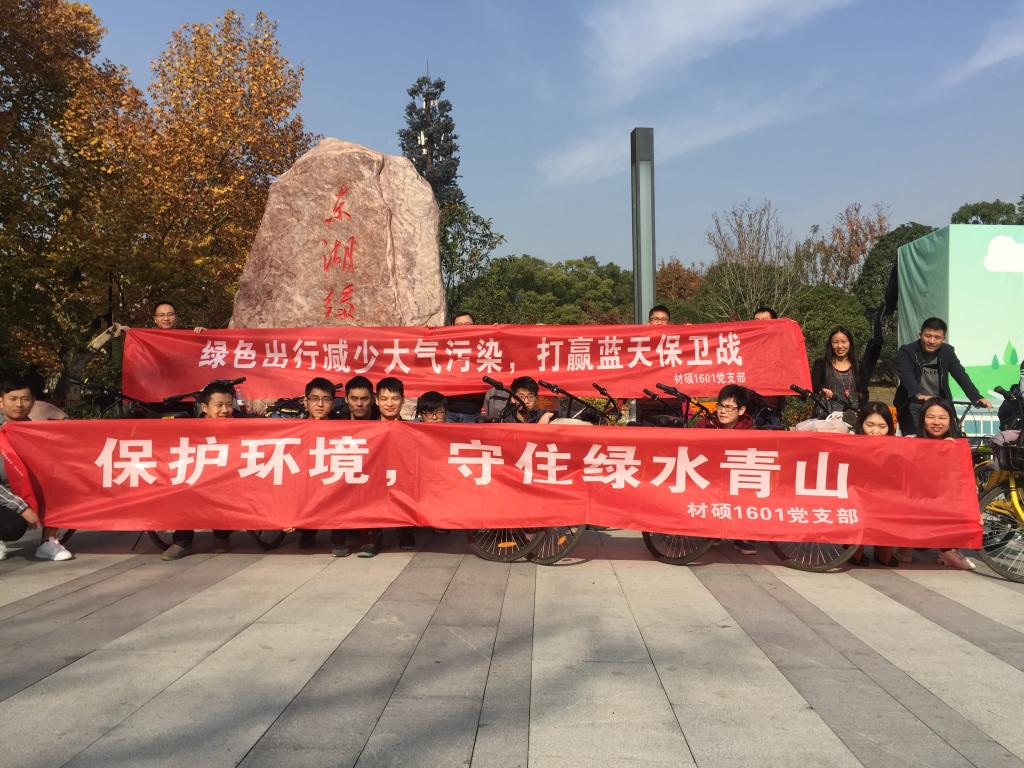 (通讯员:严倩)为深入学习贯彻党的十九大精神,进一步明确青年人的使命和担当,形成“打赢蓝天保卫战”和“金山银山不如绿水青山”这一生态建设观念,11月26日TapTap硕士1601党支部全体党员赴武汉东湖绿道骑行并进行生态环境考察。本次活动分为参观绿道骑行,新党章知识问答和重温入党誓词三个部分。