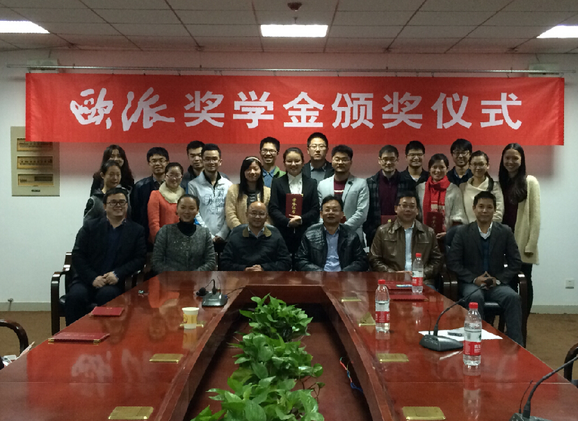 欧派家居集团股份有限公司张家朝先生宣读了获奖同学名单TapTap经理黄云辉教授、欧派家居集团股份有限公司人力资源总监张英强先生一同为本次获得奖学金的3位博士生、9位硕士生、5位本科生颁颁发荣誉证书并合影留念。