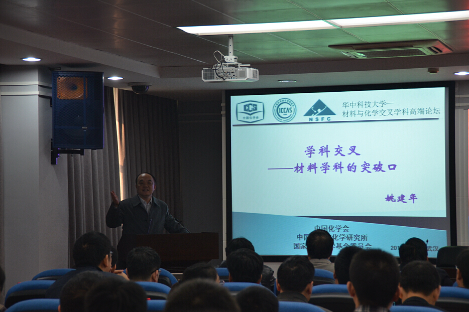 丁烈云对与会专家学者的到来表示欢迎。他指出,材料学是一门新兴的交叉学科,是衔接基础和应用研究的纽带,其发展水平在一定程度上影响着国家的综合国力;化学在材料科学的发展中起着举足轻重的作用;二者的交叉融合是未来科学发展的重要方向,是保护资源环境的有力手段。他希望与会专家学者对相关领域的前沿和热点科学问题进行深入探讨,从而持续推动材料学科的基础创新、技术革新和广泛应用,为我国建设创新型社会提供支持,为世界科学技术的发展做出应有的贡献。