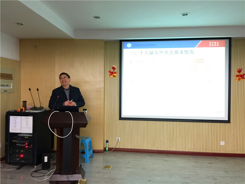 张昆就十八届五中全会基本情况及“五大发展理念”进行了深入解读,强调在“新常态”下不仅要注重经济增长和经济建设,更要加强党的建设、坚持党的领导。当前国家正处于重要战略机遇期,也面临诸多矛盾叠加、风险隐患增多的严峻挑战。张昆指出,“十三五”时期是全面建成小康社会的决胜阶段,“十三五”规划为实现“两个一百年”奋斗目标、实现中华民族伟大复兴的中国梦奠定更加坚实的基础。张昆就“创新、协调、绿色、开放、共享”五大发展理念进行了详细剖析,他认为,五大理念是“十三五”乃至更长时期我国发展思路、发展方向、发展着力点的集中体现,是关系我国发展全局的一场深刻变革。“我们需要结合高校工作实践,贯彻党的群众路线,加强思想政治工作,加快建设人才强国。”