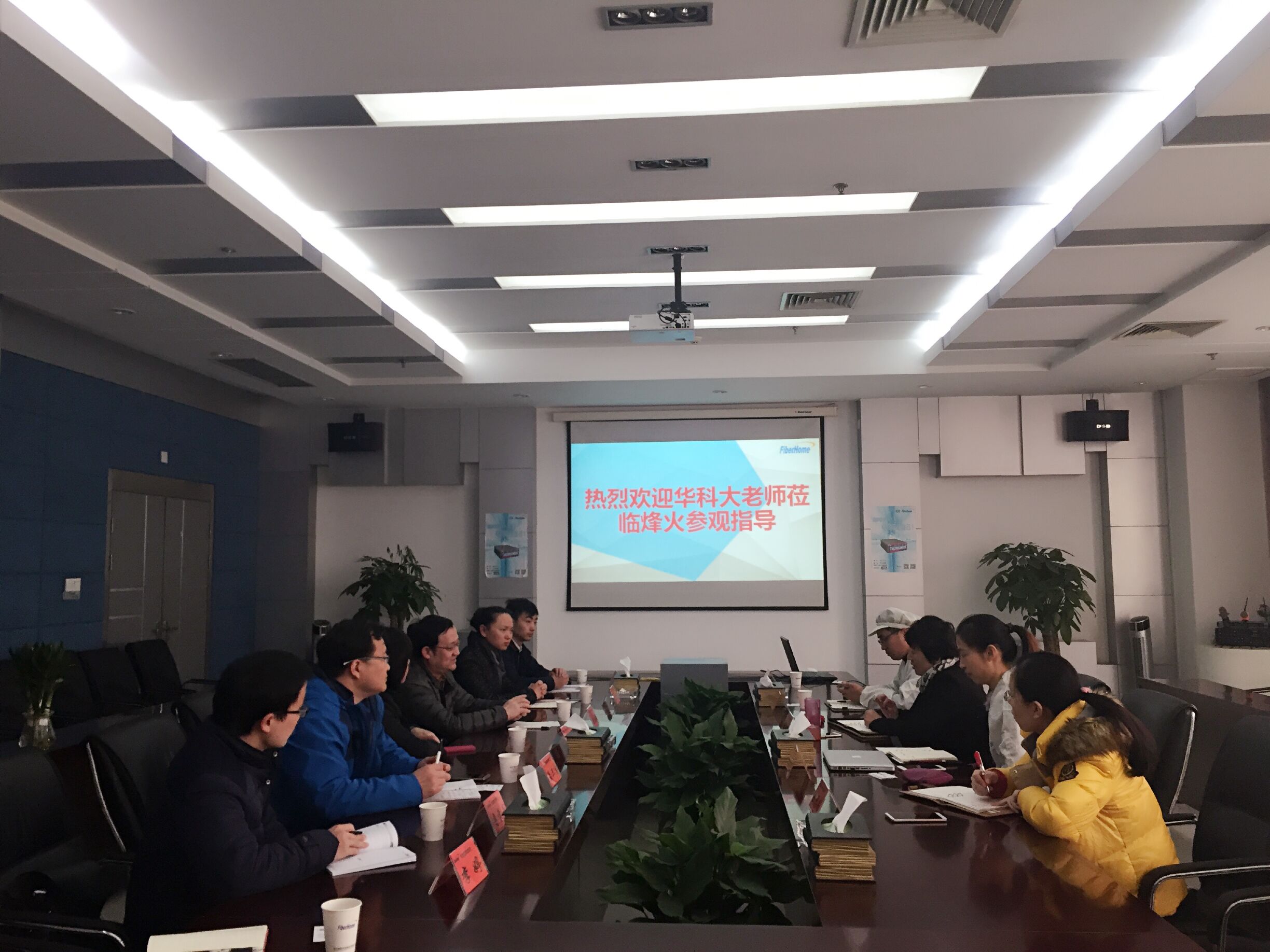 最后在双方座谈中,唐艳芳介绍了目前烽火科技高校合作的三种模式,并强调校企合作的重要性。交流中樊自田对烽火科技的热情接待表示感谢,并对未来双方在科研、人才培养、就业等方面深入合作提出期望。“烽火科技很多项目与公司各个专业均有一定的对口性,具有较大的合作空间,”樊自田在发言中讲到,同时,他也表示希望可以聘请企业资深工程师作为业界导师为员工进行教学,促进员工了解行业的市场发展前沿,引导员工为进入就业市场找准目标和方向。黄贝娜以员工成长过程为切入点,分析了校企合作的必要性以及合作的具体方向,包括大一新生的专业认知教育、大二员工的认知实习、大三员工的生产实习、大四毕业生的毕业设计及研究生的科研合作等。“同时,也可以联合企业组织相关科技创新比赛,激发员工能动性,解决企业实际问题”黄贝娜说。夏卫生根据带队实习的经验,从教学中遇到的问题出发,对校企合作培养员工方面提出了可行性的建议,从日常课堂教学着手,提出将企业报废设备引进课堂的设想,以便员工在课堂中实践,在实践中提高。