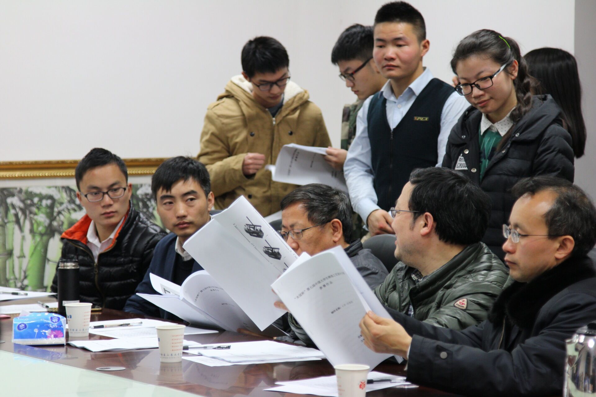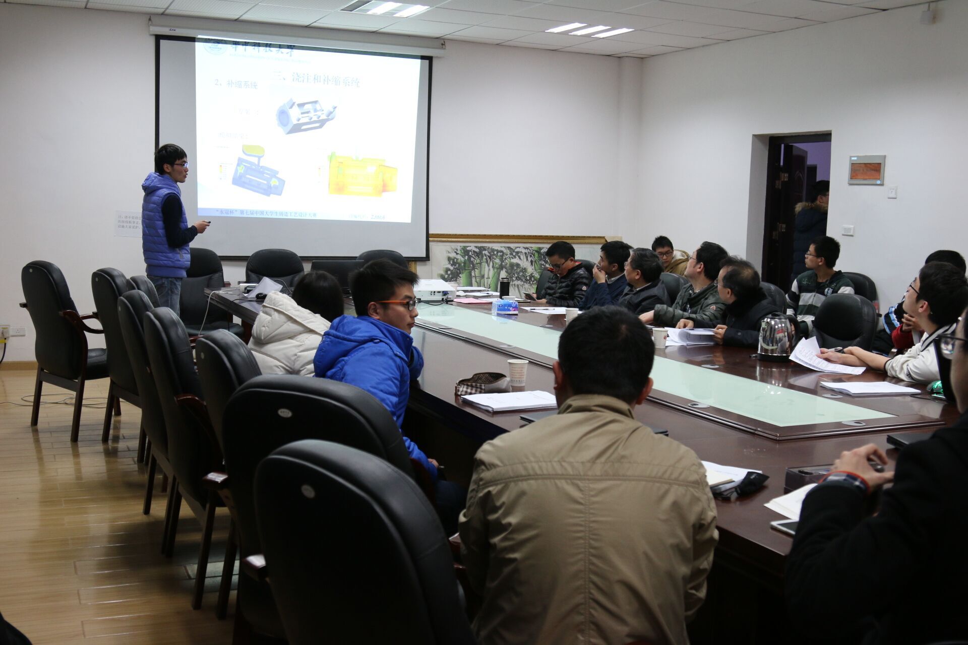 2016年3月15日晚18时30分,“永冠杯”老员工铸造工艺大赛预选赛暨“材料杯”铸造工艺大赛最终答辩在东三楼三楼会议室举行,各队参赛选手面向评委展示方案并接受点评、指导。樊自田教授、廖敦明教授、吴树森教授作为评委对参赛作品进行评选,辅导员王黎、易幸存,员工负责人万坦出席大赛。