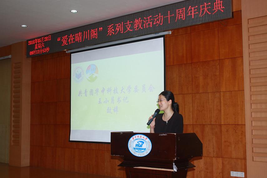 校团委书记王小月在致辞中回顾了华科历年来优秀的志愿服务项目,表达了对“爱在晴川阁”系列支教活动的大力支持与肯定,同时也期望同学们能够在社会公益活动中弘扬“奉献、友爱、互助、进步“的志愿服务精神,践行习近平总书记寄语青年员工“勤学、修德、明辨、笃实”的八字箴言。晴川阁小学董事长夏姣表示,志愿者不仅是小朋友的学业辅导老师,更是他们成长路上的引路人,希望支教活动能够一直开展下去,将双方的情谊长期延续。