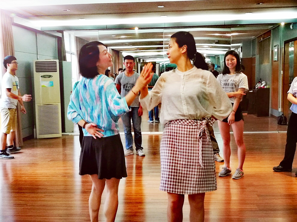活动在王曦老师进行简短的开场介绍后开始。郭老师首先带领大家跳了一支轻松欢快的兔子舞,现场的气氛顿时活跃起来。紧接着,郭老师和她的助理开始耐心细致地教授同学们华尔兹舞蹈动作,让大家感受华尔兹集体舞式,在舞蹈世界中放松心情,释放内心压力。