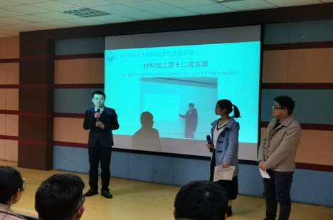 随后会议以情景剧形式开展支部党务工作培训交流。上学期表现优秀的党支部代表围绕着支部工作中遇见的共性问题,向在场的党员们作了详细生动的展示。材料学第九研究生党支部书记、2016级博士生李雅倩结合科研生活,以幽默的语言、丰富的事例向大家解惑如何处理科研与党员日常学习。材料加工第十二研究生党支部书记、2016级硕士杜睿和第十五研究生党支部书记、2017级硕士陈夏岩,分别与支部党员以案例情景分享的形式围绕着“如何在有限时间内筹备支部组织生活,让每个党员都全身心投入?如何有效组织党员实践日活动,调动党员们的积极性?”等问题向大家作现场回答,引发了党员们的共同思考。