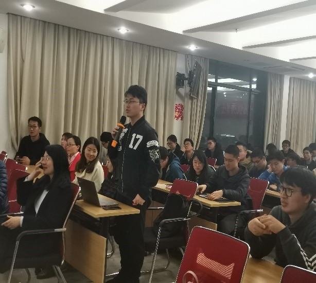 随后,霍文龙博士结合自己的博士生涯,从科研的四大要素——心态、兴趣、方法、投入着手,和同学们分享他对“如何做一名优秀研究生”的一些思考。霍博士告诉同学们任何时候都不要否定自己,保持平和心态,这是科研的基础,做研究是循序渐进过程,需要很长的积累时间,要沉住气。同时,霍博士建议大家研究要早下手,从一个新手到独立开展实验需一点点积累,多读文献,多积累素材,任何实验数据都不要丢弃,及时整理实验数据,积极争取出国交流的机会。