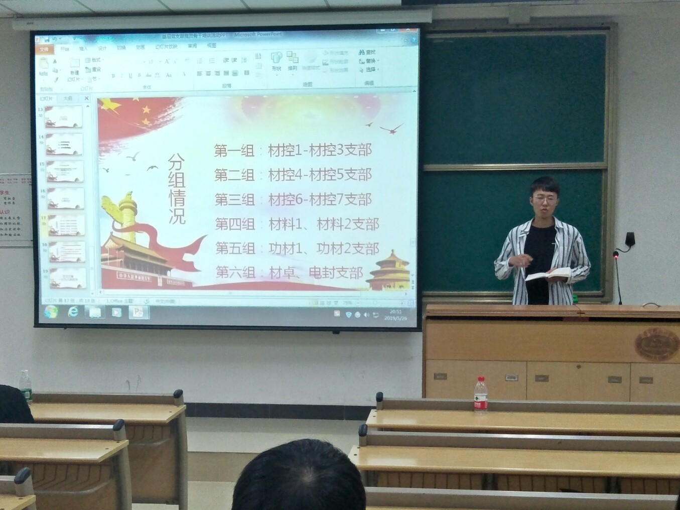 接下来,博士生党员李继康(2017年曾任材料一支部书记)同志带领同学们在学习《中国共产党支部工作条例(试行)》的基础上就本科生党支部的组织力从哪里来这一问题与大家进行深入交流。他详细说明要从三个方面下功夫——在健全组织生活制度上下功夫、在提升党支部感情氛围上下功夫、在提升培养党员质量上下功夫。