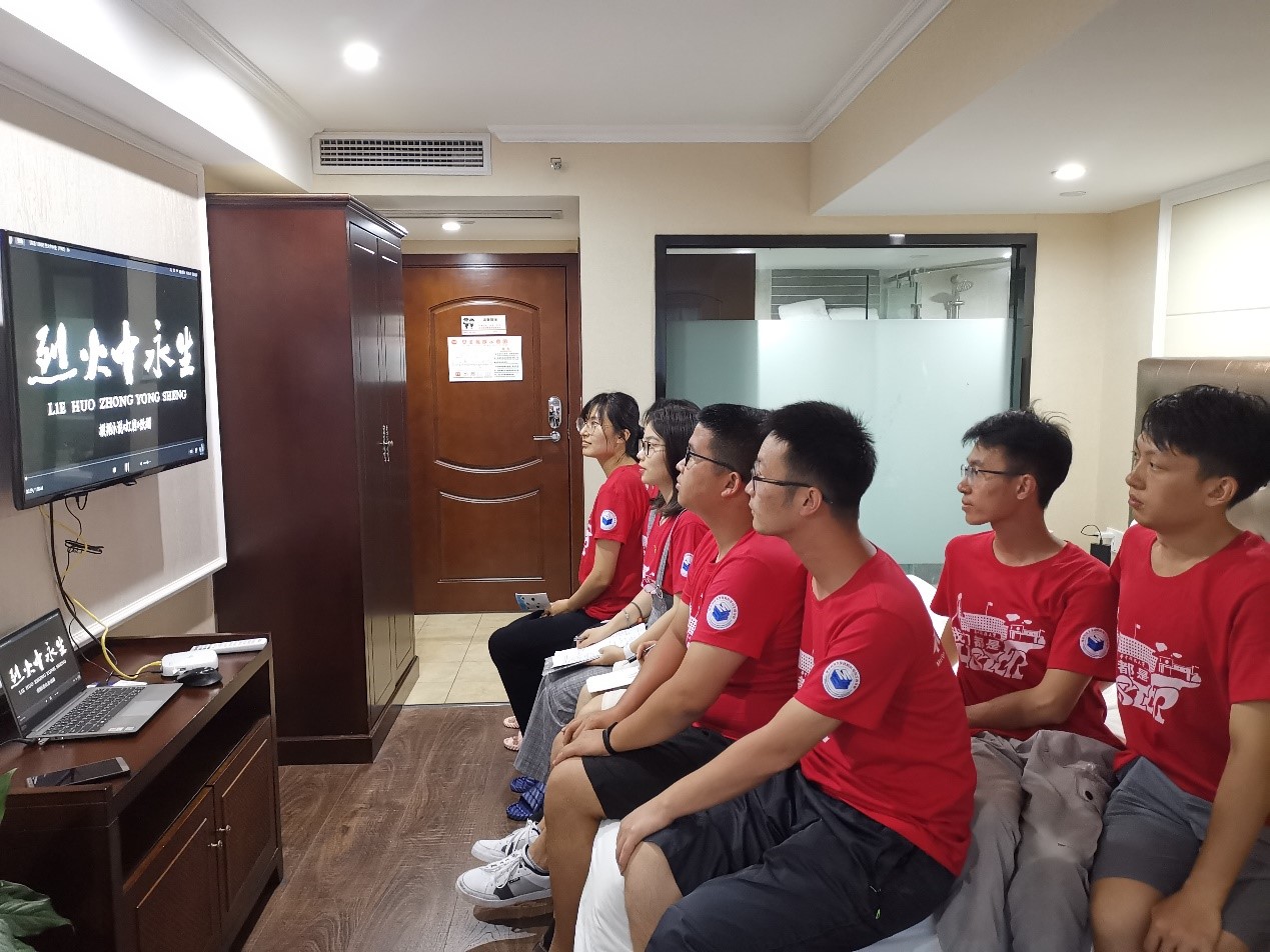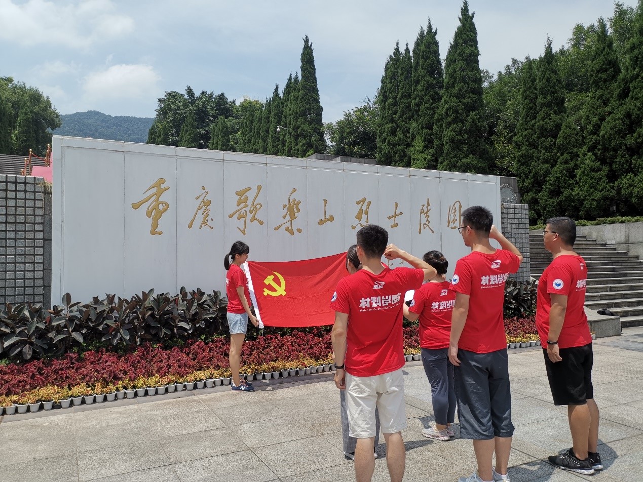 8月4日,实践队在中华人民共和国成立七十周年来临之际,来到重庆市红岩魂广场开展缅怀红岩革命先烈活动。在歌乐山烈士陵园纪念碑前,全体师生整齐列队,怀着崇敬的心情向烈士默哀三鞠躬,全体党员在纪念碑下和党旗前,郑重举起右拳,神情庄重,重温入党誓词。王曦老师带领实践队员们参观了白公馆、渣滓洞,进行了红岩精神微党课学习,观看了根据《红岩》创作的电影《烈火中永生》,革命先辈的英勇事迹引起了大家的共鸣,实践队员们纷纷表示要传承发扬红岩革命精神,坚定理想信念,以青春活力和满腔热血为新时代的中华民族伟大复兴奋勇前进。