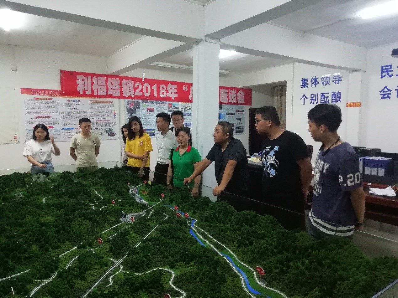在湖南桑植县利福塔镇,镇长王文科代表领导班子对实践队员的到来表示热烈欢迎,并与队员们进行交流。王文科简要介绍了利福塔镇整体情况以及在精准扶贫、改善交通、生态治理等方面的工作发展。2017年湖南选调生、优秀员工李鹏飞和实践队员们交流了作为选调生两年来在基层的所思所感。当实践队员们了解到李鹏飞在艰苦的基层工作条件下,主动在脱贫攻坚、征地拆迁等不同工作中磨练自己,努力克服每个岗位中的困难时,大家都深深体会到作为青年,应该积极发挥主观能动性,吃苦耐劳,努力在基层中沉淀积累,在基层实践中成长成才。